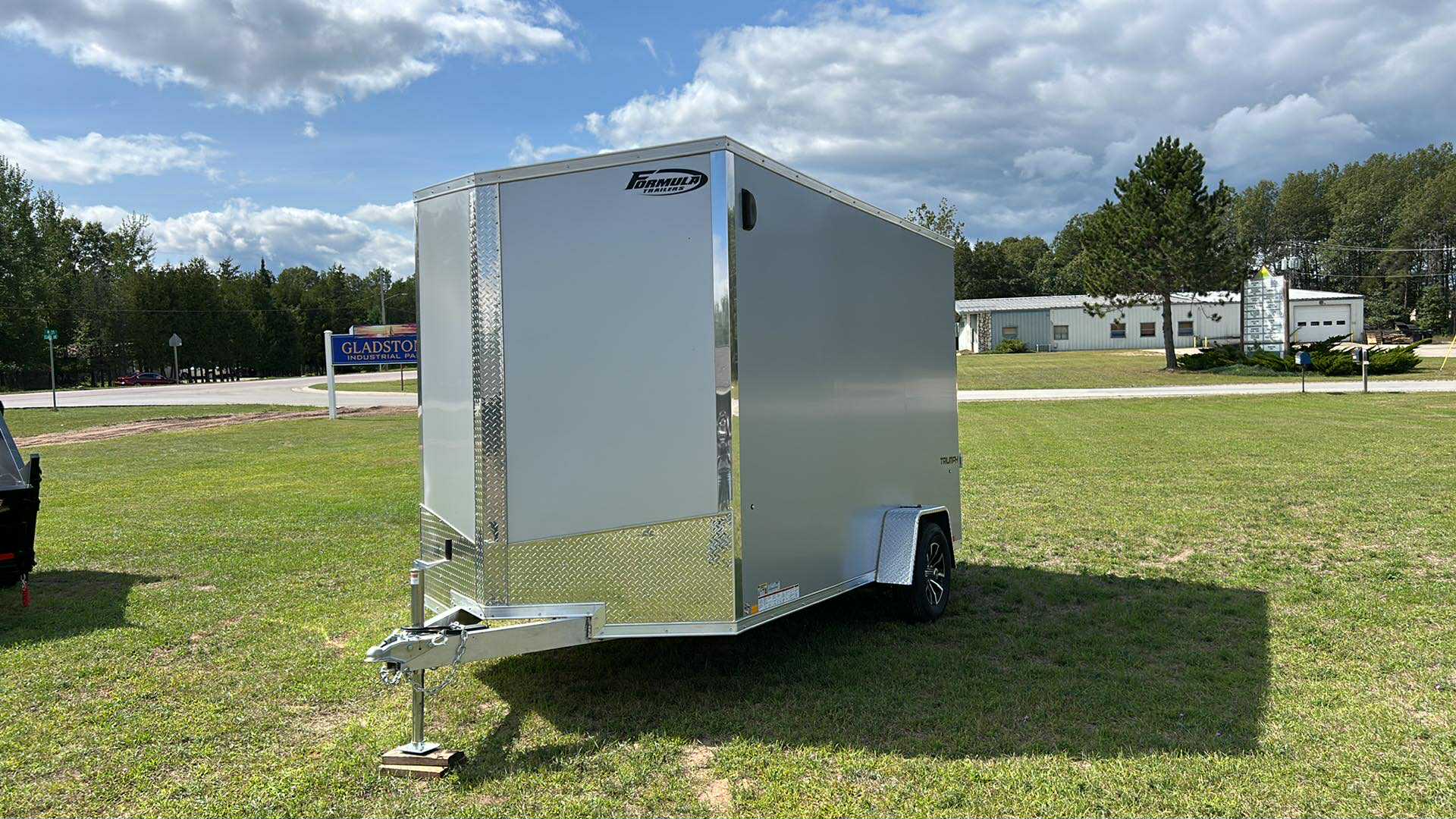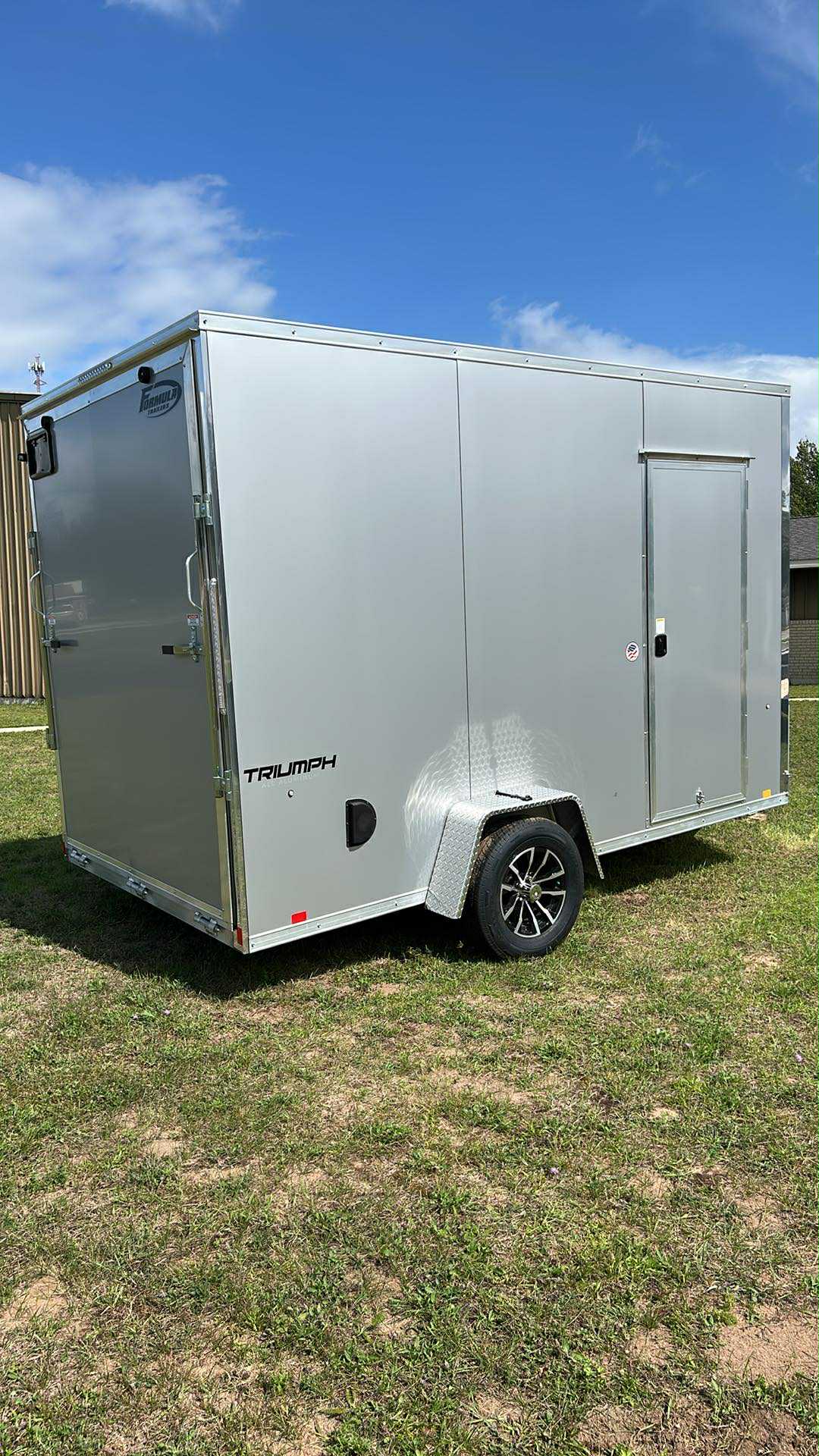 Formula All Aluminum 7 * 12 V-Nose Enclosed 3.5K Trailer with extra 12" height, upgraded black aluminum wheels and spare tire!